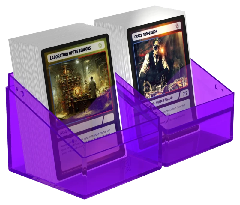 Ultimate Guard Boulder 100+ Clear Deck Boxes The legend is back in an all-new look: with the transparent Boulder 100+ Clear, you'll always know exactly which cards are in your deck box. The Boulder 100+ Clear is a durable and reliable deck box with a secure closure. It can hold up to 100 double-sleeved or 120 single-sleeved cards from all popular trading card games like Magic: The Gathering, Pokémon, Lorcana, One Piece, or Yu-Gi-Oh! • Completely transparent • Secure closure • Durable and rigid box • Modular design to combine with Ultimate Guard products *Cards not included