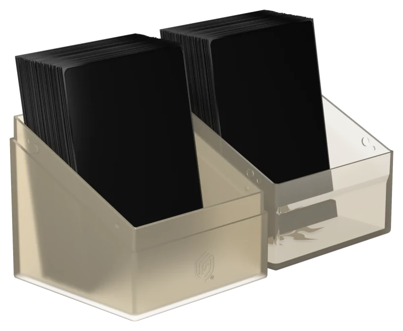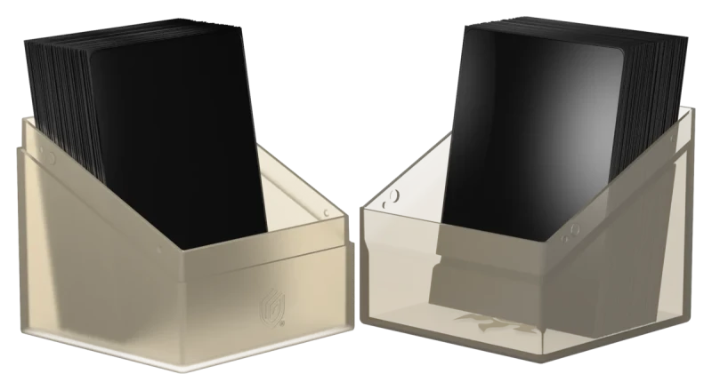 Ultimate Guard Boulder 100+ Hybrid Magic: The Gathering "Mana Edition" Deck Boxes Ultimate Guard's Boulder 100+ Hybrid combines the completely transparent top of the Boulder Clear with a soft-touch base in the style of the original Boulder. The officially licensed MTG deck box is easy to open but offers reliable protection for your cards thanks to its sturdy case and secure closure. The Boulder 100+ Hybrid holds up to 100 double-sleeved cards and is suitable for all Magic: The Gathering formats such as Commander (EDH), Standard or Modern. • Designed for 100 double-sleeved cards in Ultimate Guard sleeves • Officially licensed Magic: The Gathering artwork • Durable and rigid box • Secure closure • Transparent top, soft-touch base *Cards not included