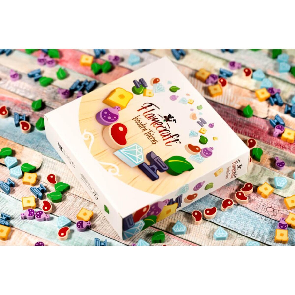 In Flamecraft, 1-5 players take on the role of Flamekeepers, gathering items, placing dragons and casting enchantments to enhance the shops of the town. Dragons are specialized (bread, meat, iron, crystal, plant and potion) and the Flamekeepers know which shops are the best home for each. Visit a shop to gain items and a favor from one of the dragons there. Gathered items can be used to enchant a shop, gaining reputation and the favors of all the dragons in the shop. If you are fortunate enough to attract fancy dragons then you will have opportunities to secure even more reputation.